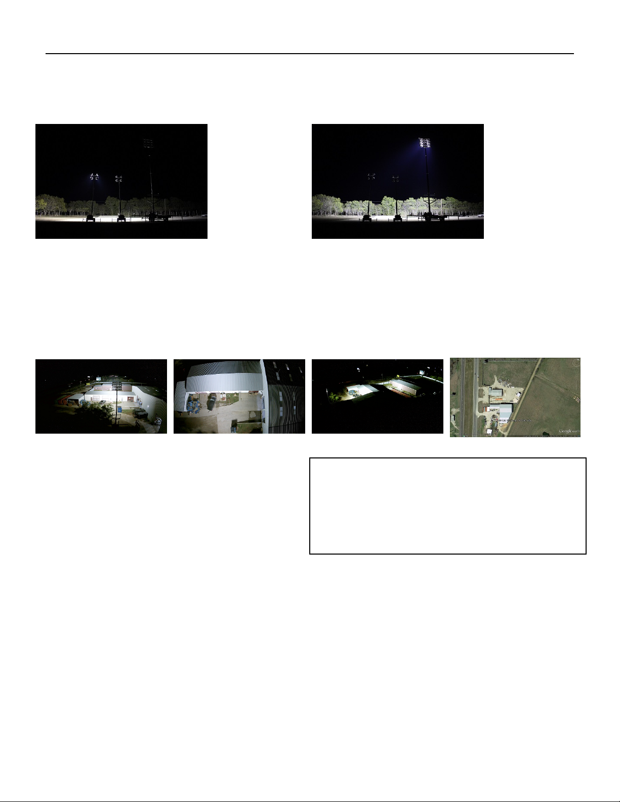 The left image above shows the light mast illuminating a 300,000+ sq ft