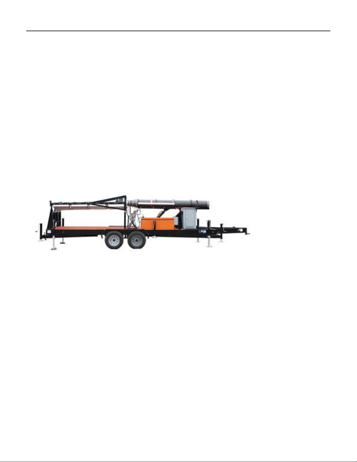 The entire unit is mounted onto a four wheel, tandem axle trailer constructed of 8" box steel equipped with axles. Each axle is rated at 7,000 lbs