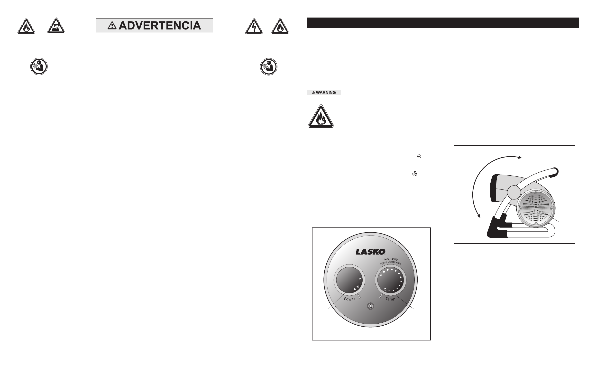 2. Después que el Calefactor se haya enfriado, conecte la unidad a un tomacorriente eléctrico de 120V~ y siga las instrucciones de funcionamiento