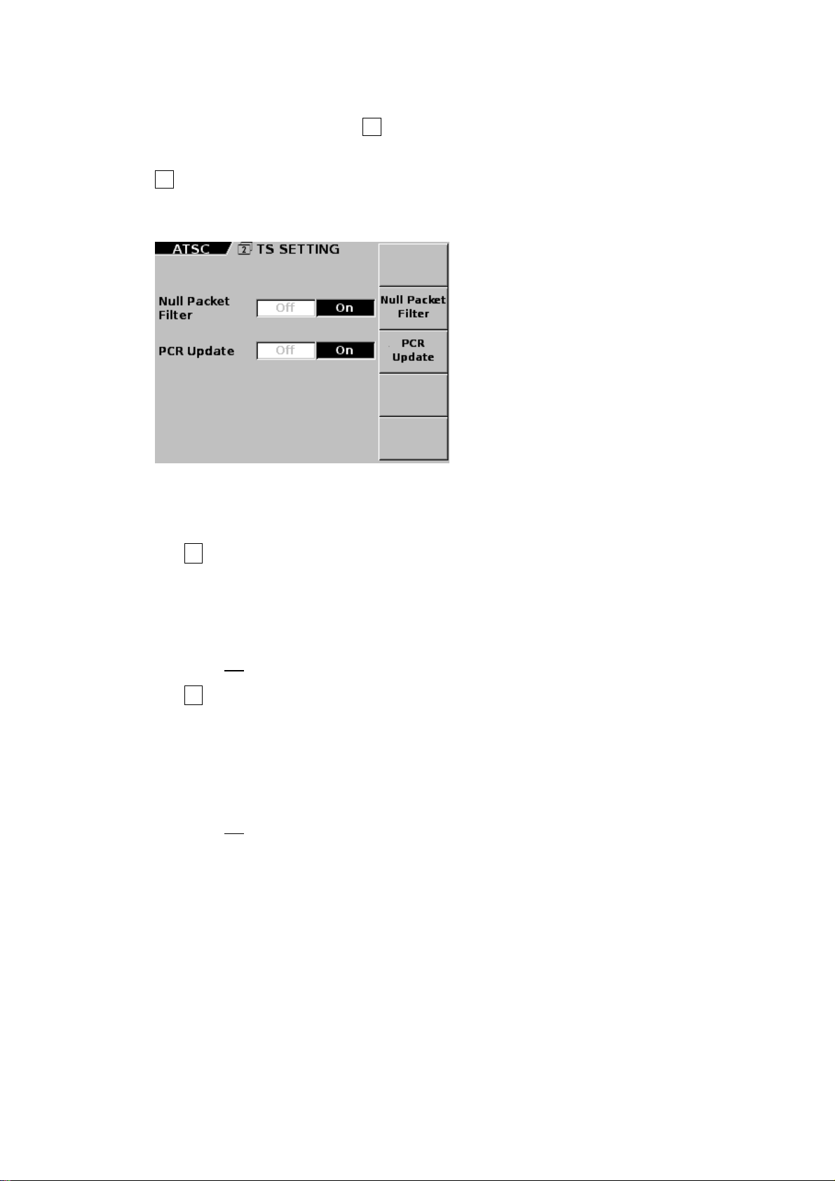 • When the TS input is switched (between each fixed pattern, PN, SPI, ASI, and