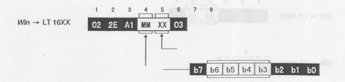 | Win → LT 16XX | 02 | 2E | 81 | M1 | M2 | CC | WN | BX | ВХ | BY | BY | EX | EX | EY | EY | PS | 03 |