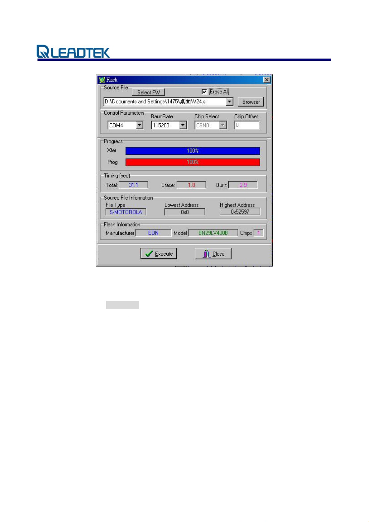 1. Check “Erase All” and “Force Download” (GMonitor2.102 for single chip) options.