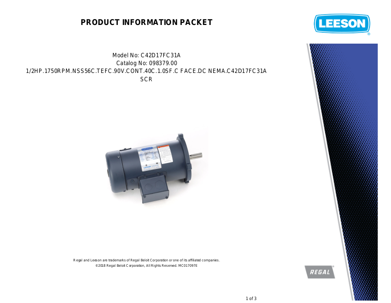 Leeson 098379.00 Product Information Packet