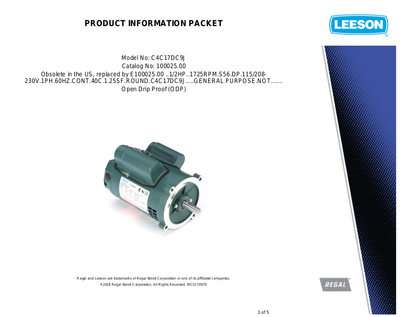 Regal and Leeson are trademarks of Regal Beloit Corporation or one of its affiliated companies.