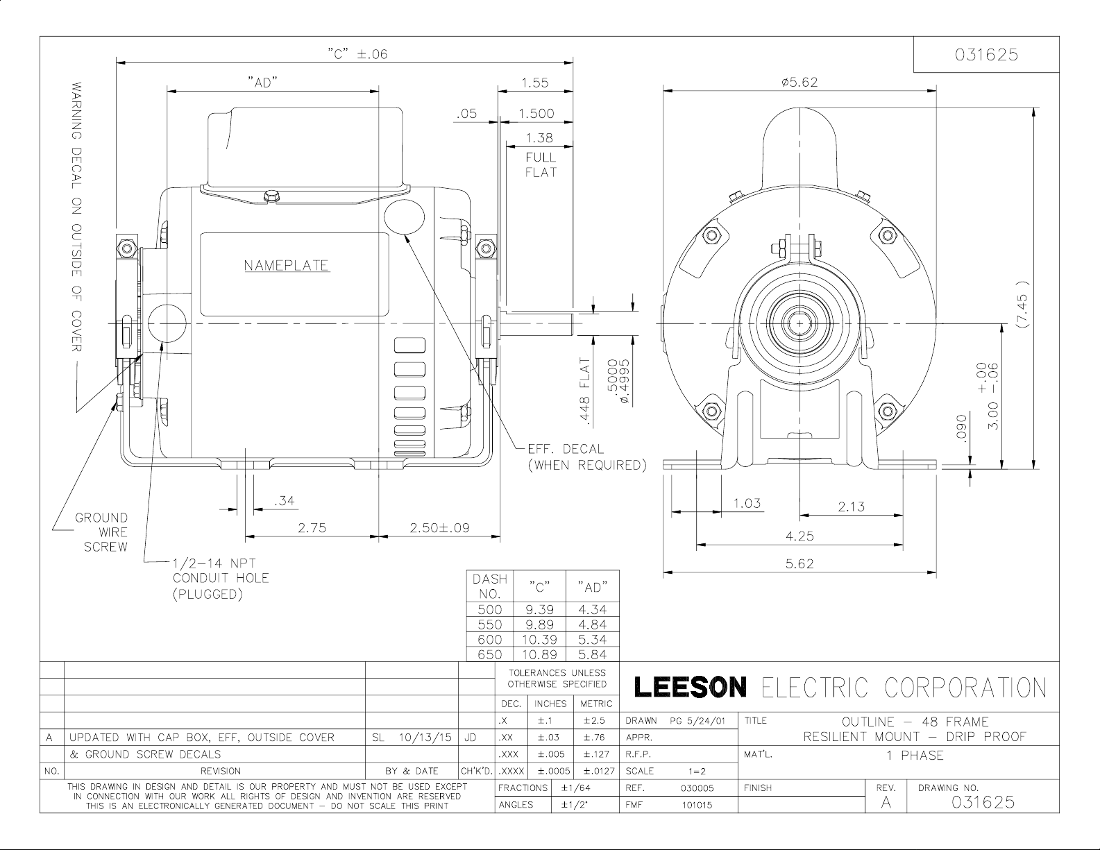 Product Information Packet: Model No: A4C17DR1G, Catalog No:100109.00 1/4HP..1725RPM.48.DP.115/208230V.1PH.60HZ.CONT.AUTOMATIC.40C.1.35SF.RESILIENT BASE.