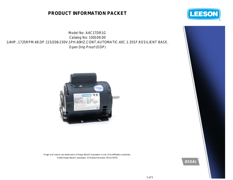 Regal and Leeson are trademarks of Regal Beloit Corporation or one of its affiliated companies.