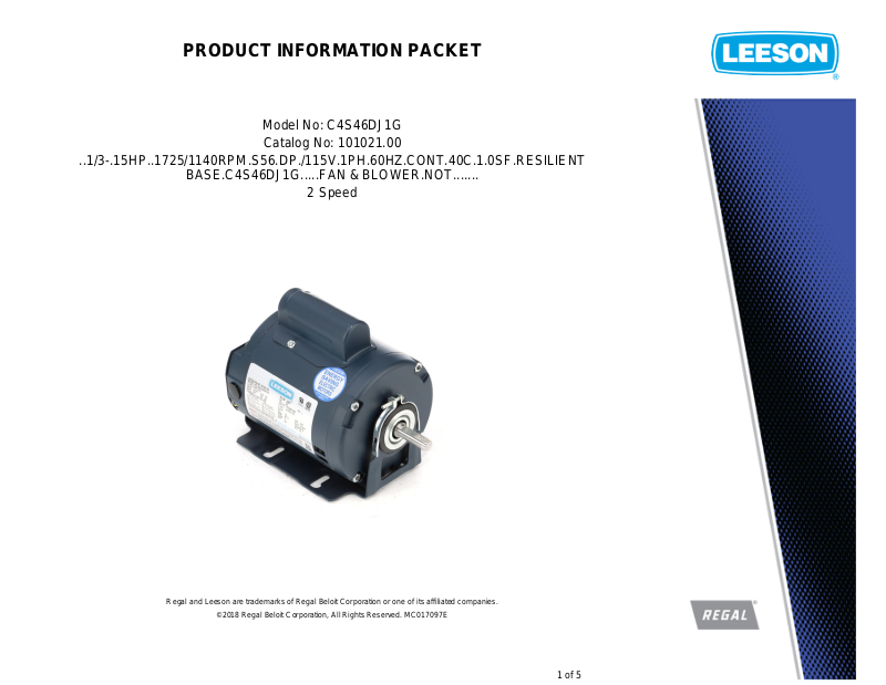 Regal and Leeson are trademarks of Regal Beloit Corporation or one of its affiliated companies.