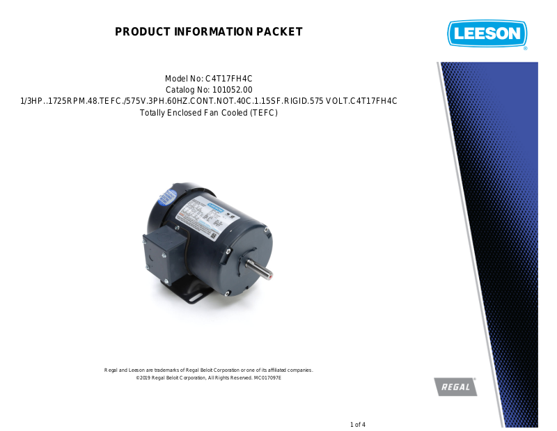 Regal and Leeson are trademarks of Regal Beloit Corporation or one of its affiliated companies.