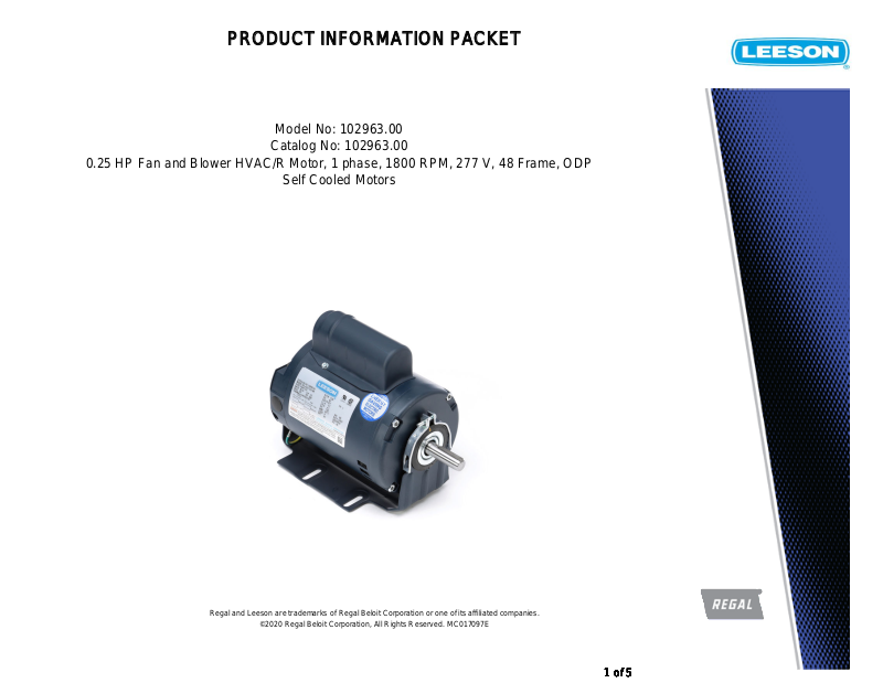 Regal and Leeson are trademarks of Regal Beloit Corporation or one of its affiliated companies.