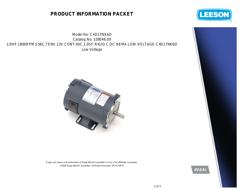 Regal and Leeson are trademarks of Regal Beloit Corporation or one of its affiliated companies.