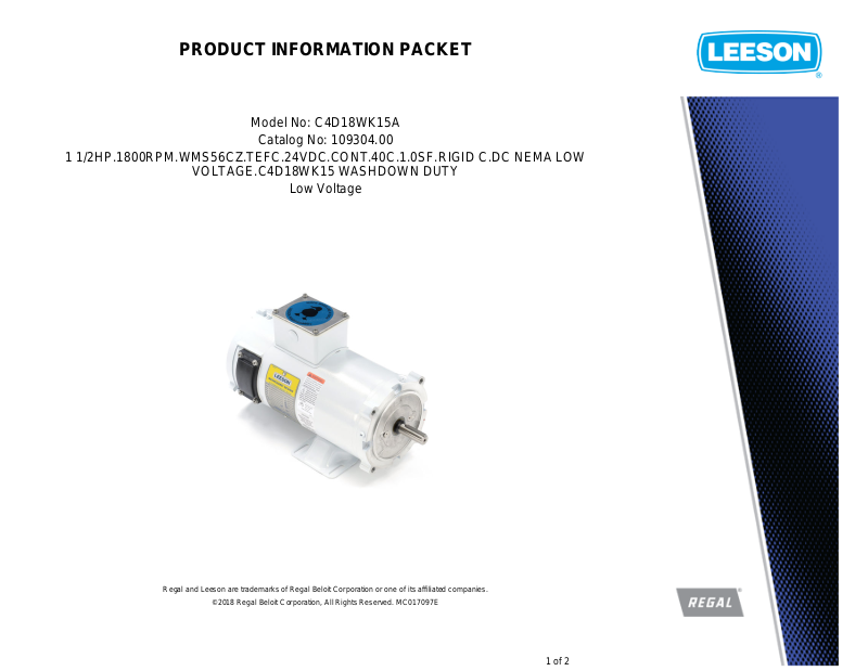Regal and Leeson are trademarks of Regal Beloit Corporation or one of its affiliated companies.