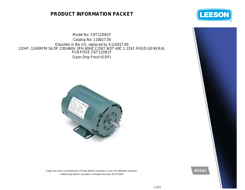 Regal and Leeson are trademarks of Regal Beloit Corporation or one of its affiliated companies.