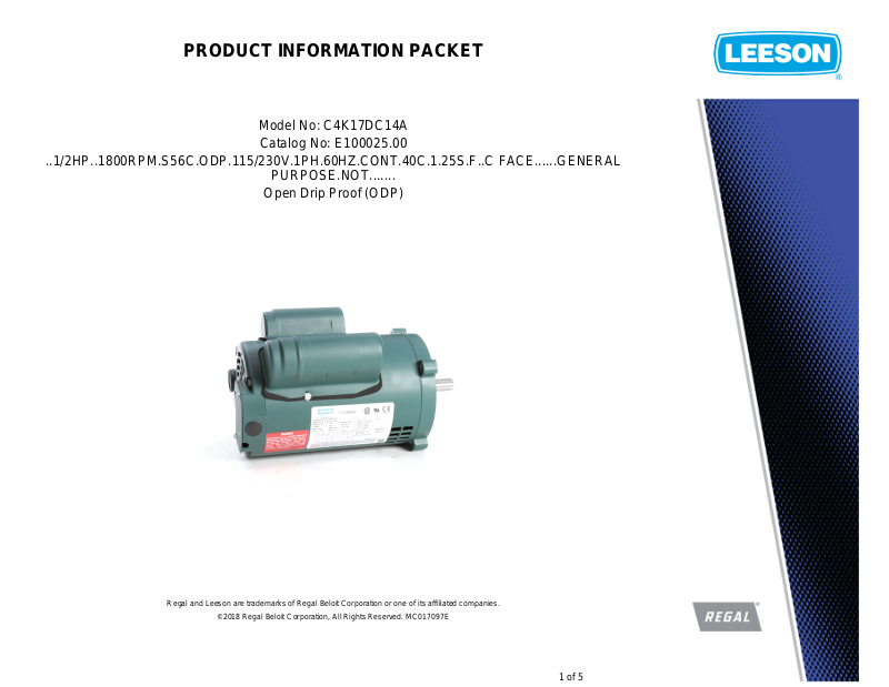 Regal and Leeson are trademarks of Regal Beloit Corporation or one of its affiliated companies.