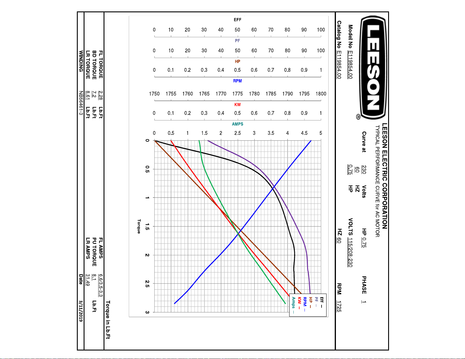 Product Information Packet: Model No: E119854.00, Catalog No:E119854.00 0.75 HP General Purpose Motor, 1 phase, 1800 RPM, 115/208-230 V, 56
