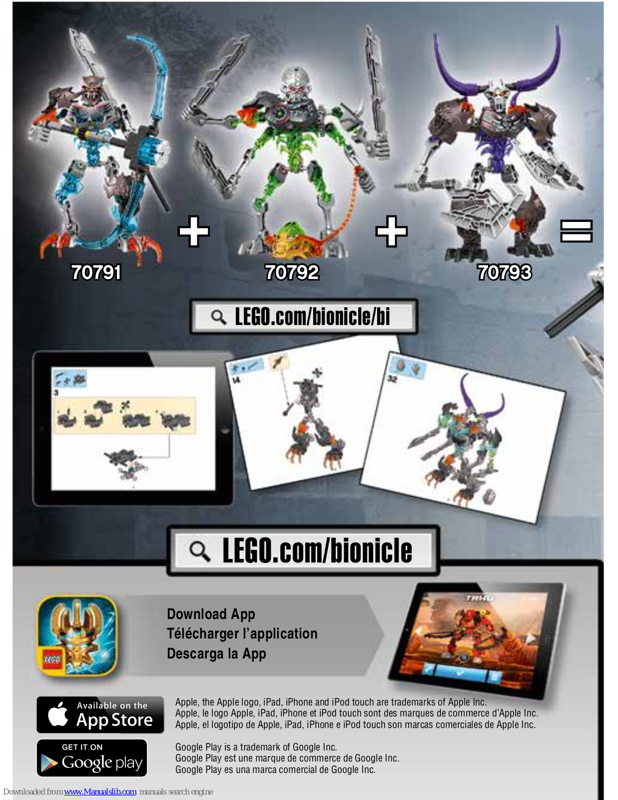 LEGO Bionicle 70792, Bionicle 70791 Assembly Manual