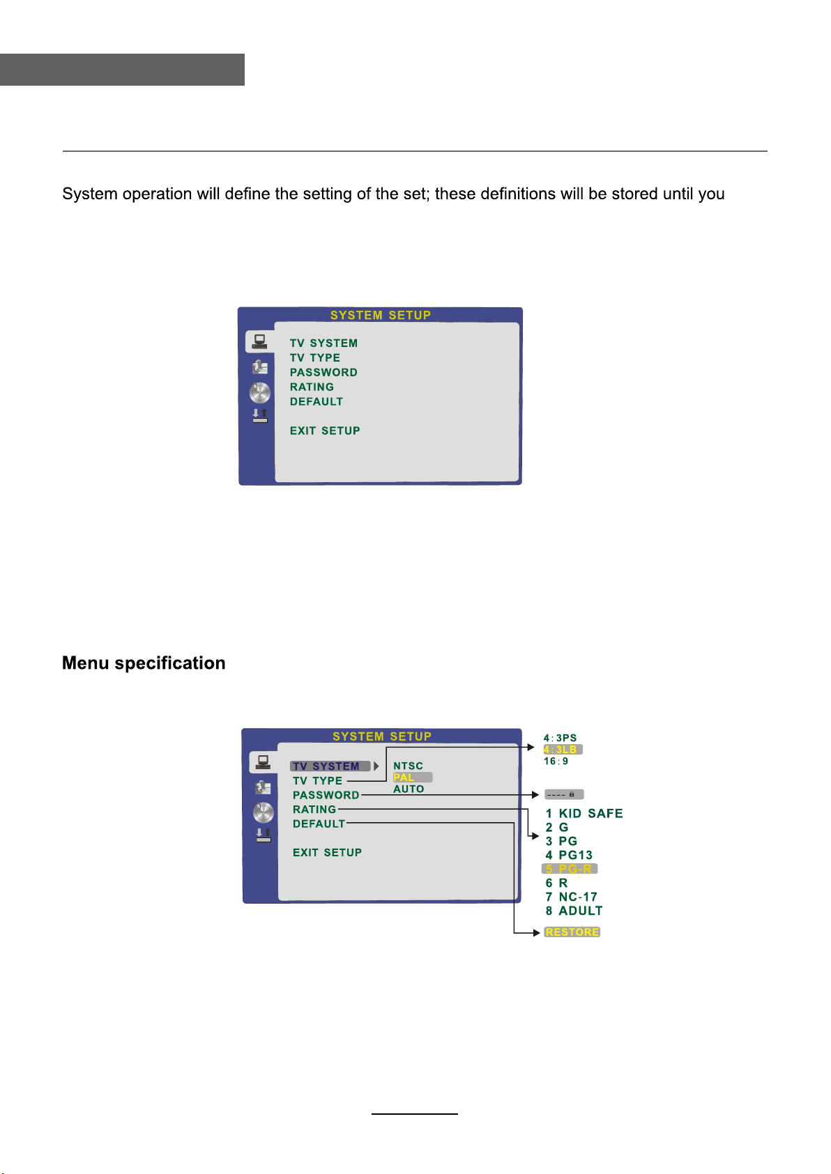 button to select the Icon of the desired section, e.g. “TV System" and press