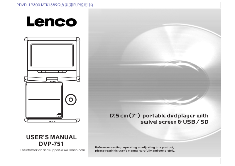 Thank you f or purchasing thi s Portable DVD pl ayer with swive l sc reen &