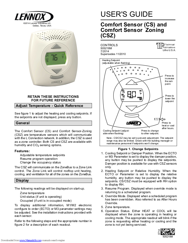 Note - CS/CSZ may be set to prevent adjustment. The setpoint