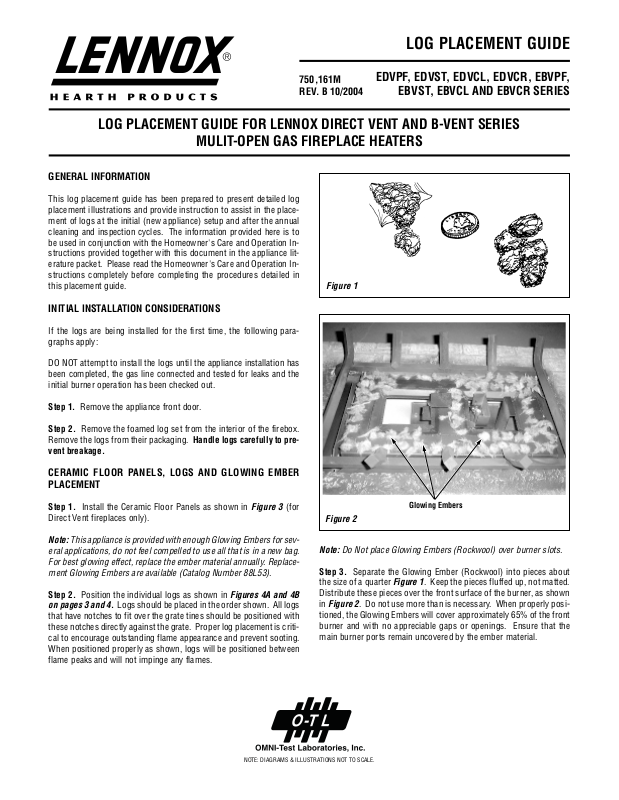 LOG PLACEMENT GUIDE FOR LENNOX DIRECT VENT AND B-VENT SERIES