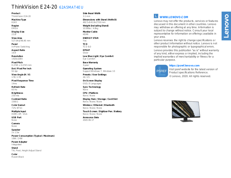 © 2020 Lenovo. All rights reserve d. These produ cts are av ailable while supplies last. Prices shown are su bject to c hange without n otice. For any question s concerning price, please co ntact yo ur Lenovo Account E xecutive .