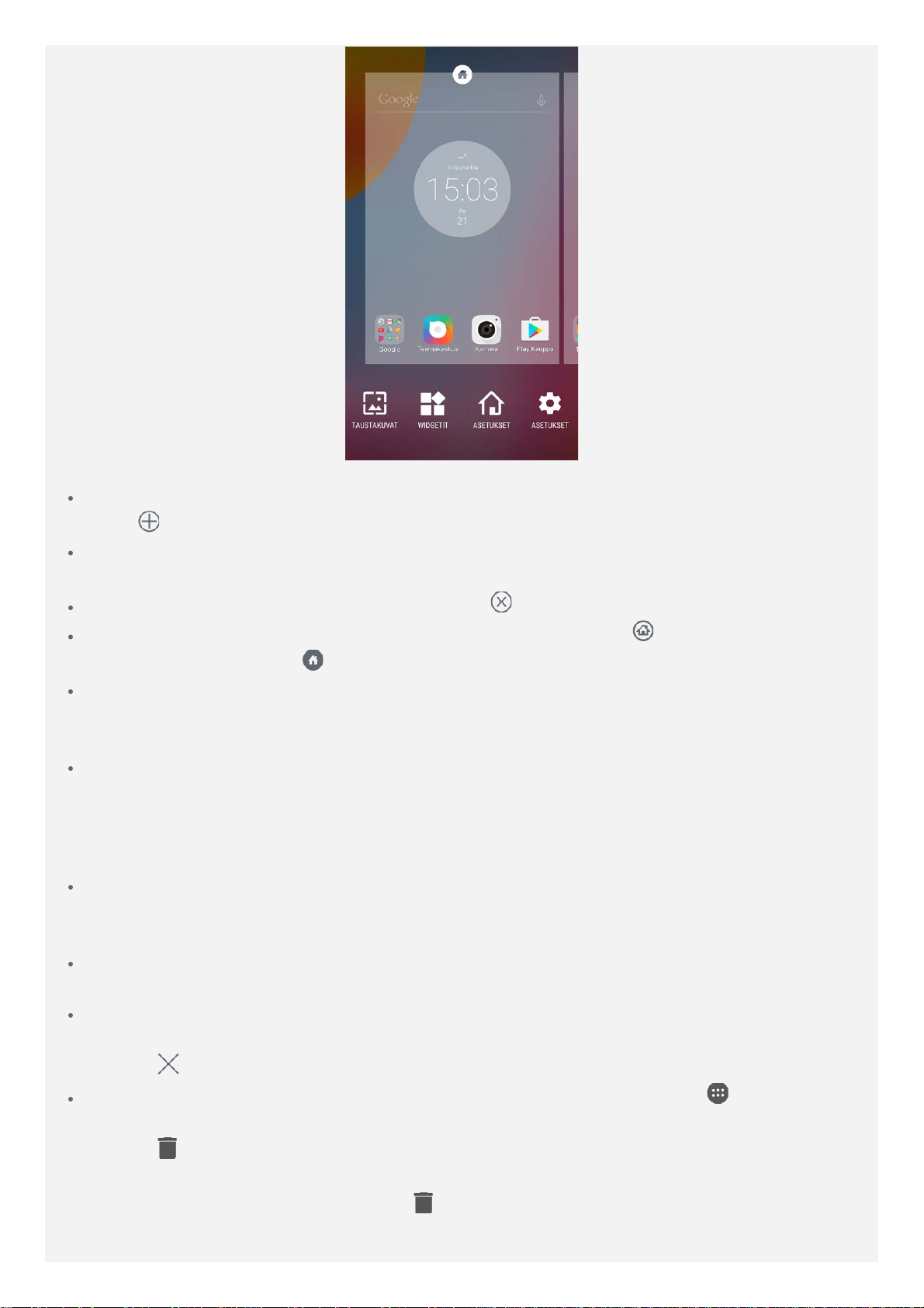 Voit siirtää widgetin tai sovelluksen pitämällä widgettiä tai sovellusta painettuna, kunnes