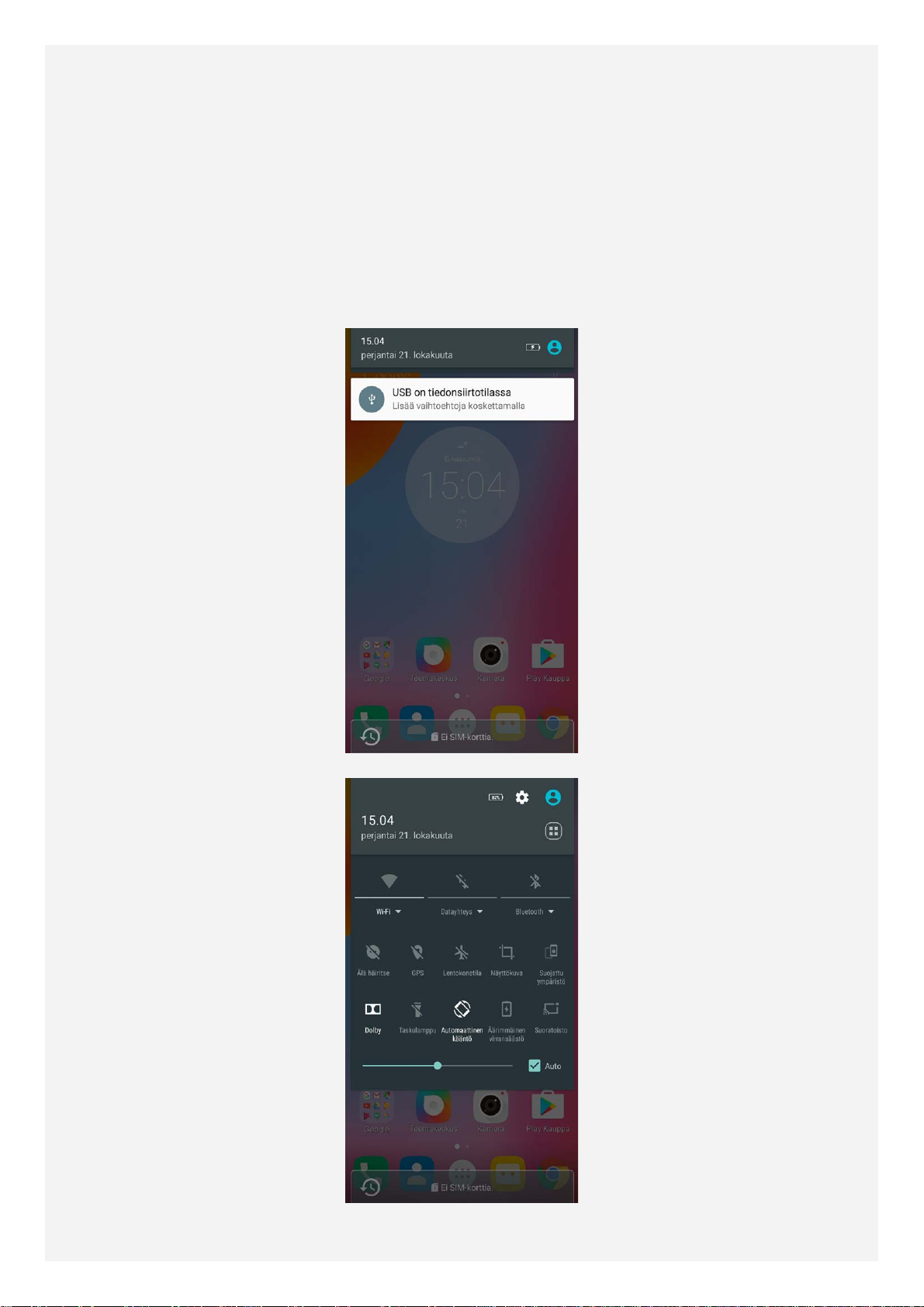Kun kytket puhelimen tietokoneeseen USB-kaapelilla, ilmoituspaneelissa näkyy ilmoitus,