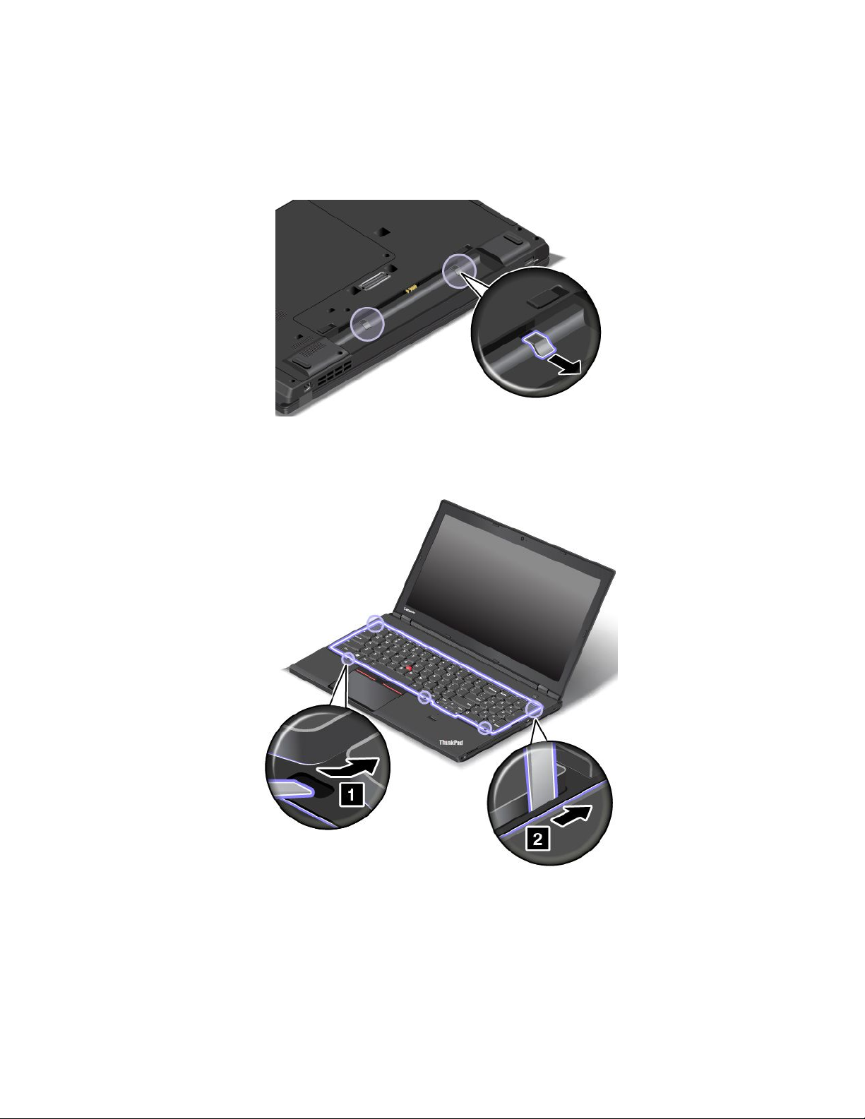 5.用平头螺丝刀将键盘框架向后推动2.5毫米(0.1英寸),将键盘框架的固定栓隐藏在键盘边