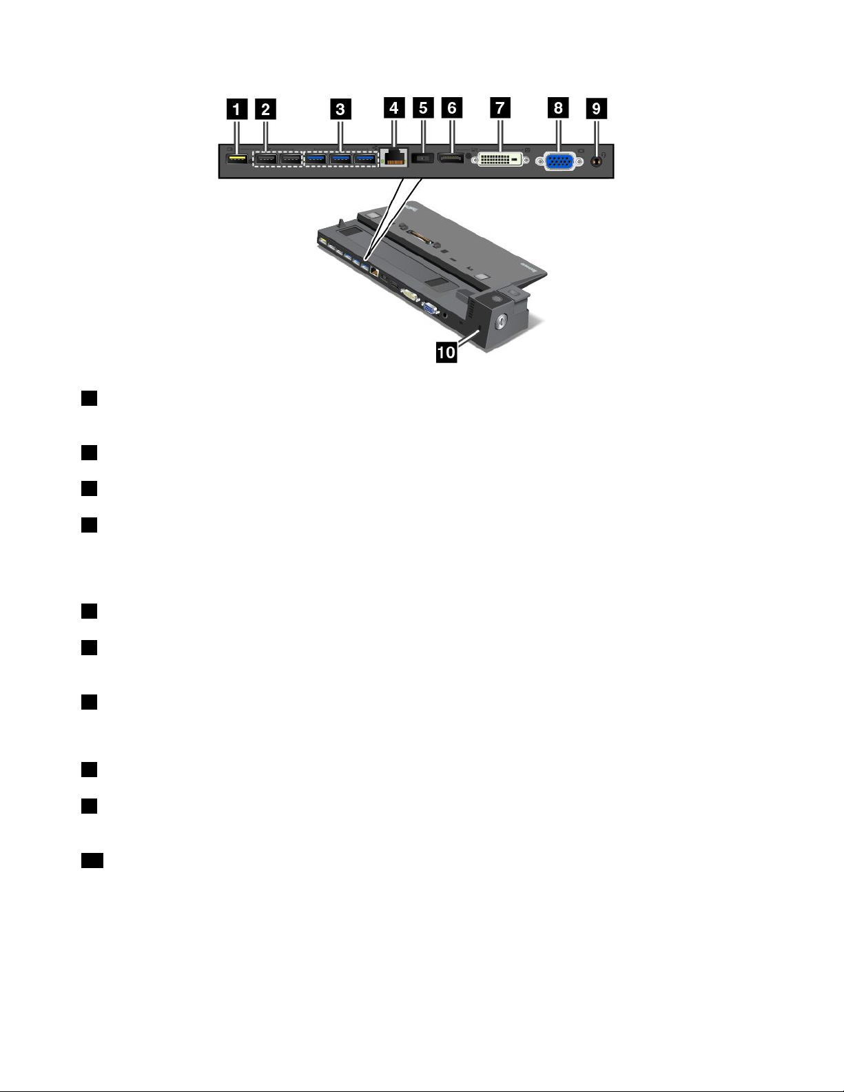 本节介绍ThinkPad扩展坞上控制装置和接口的位置。