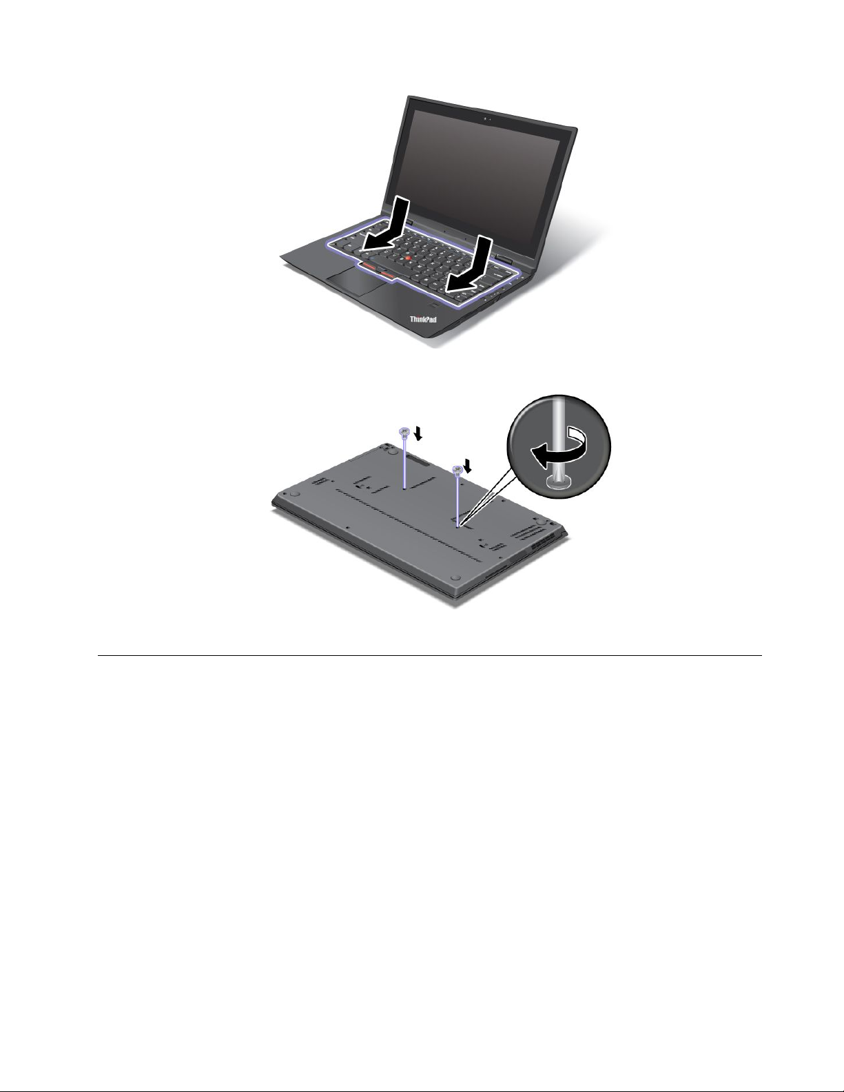 4.Fällihopskärmenochläggdatornmedundersidanuppåt.Skruvatillbakadetvåskruvarna.