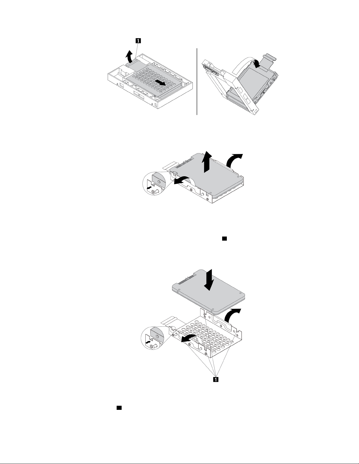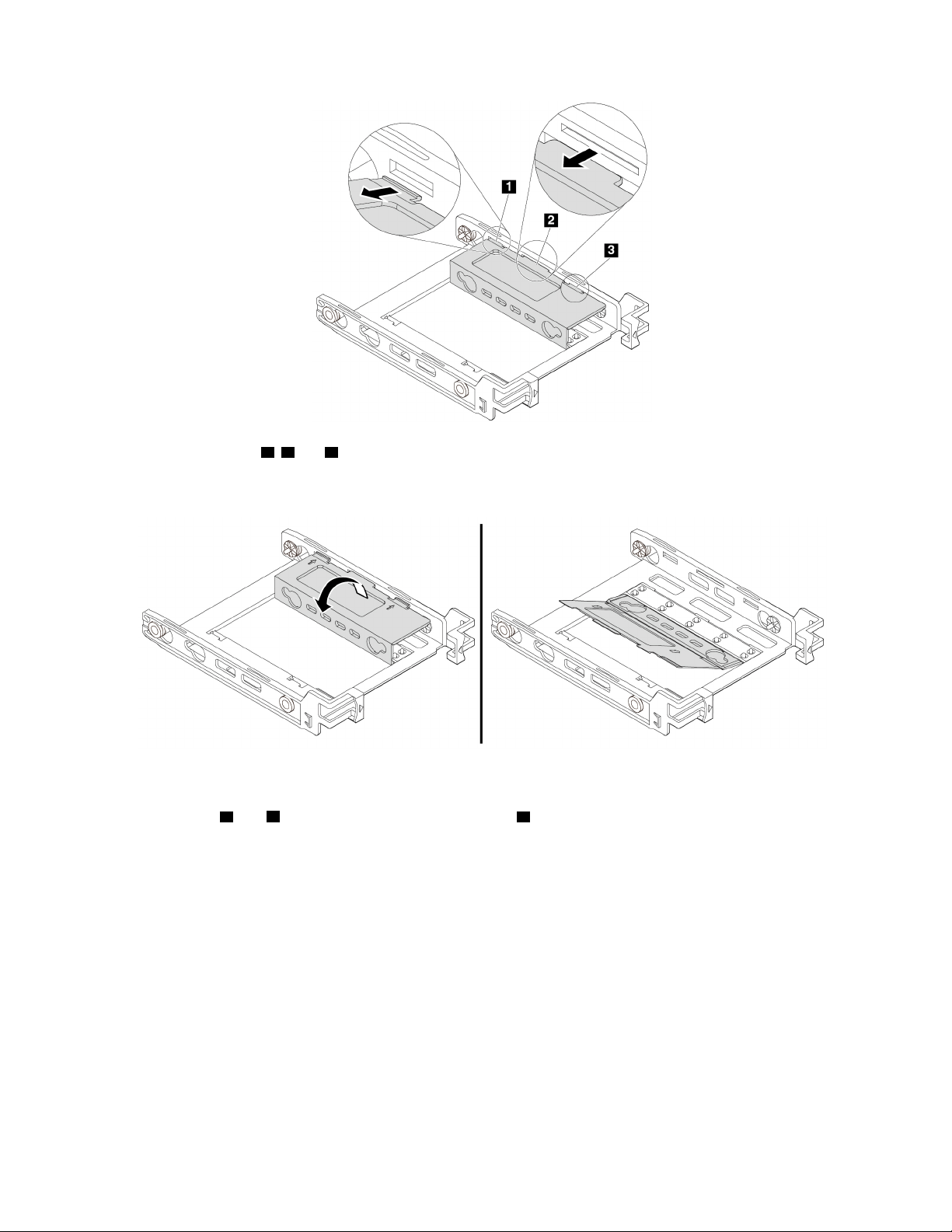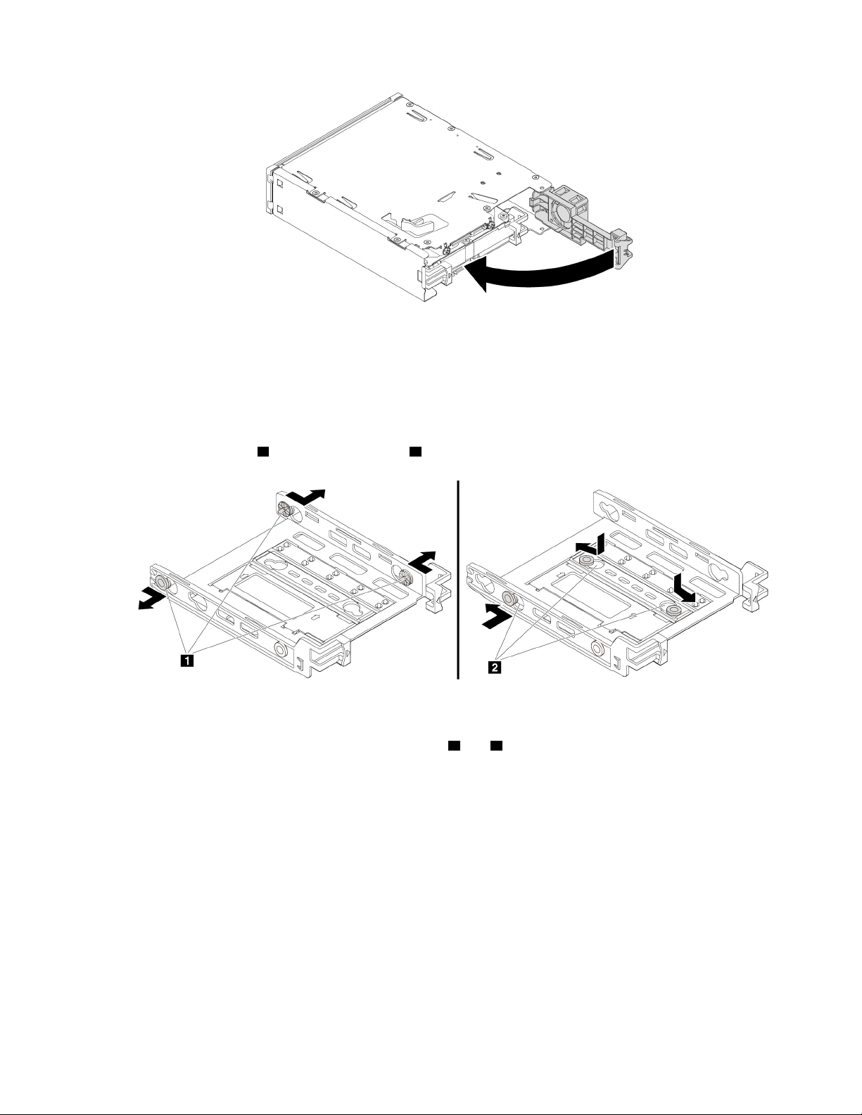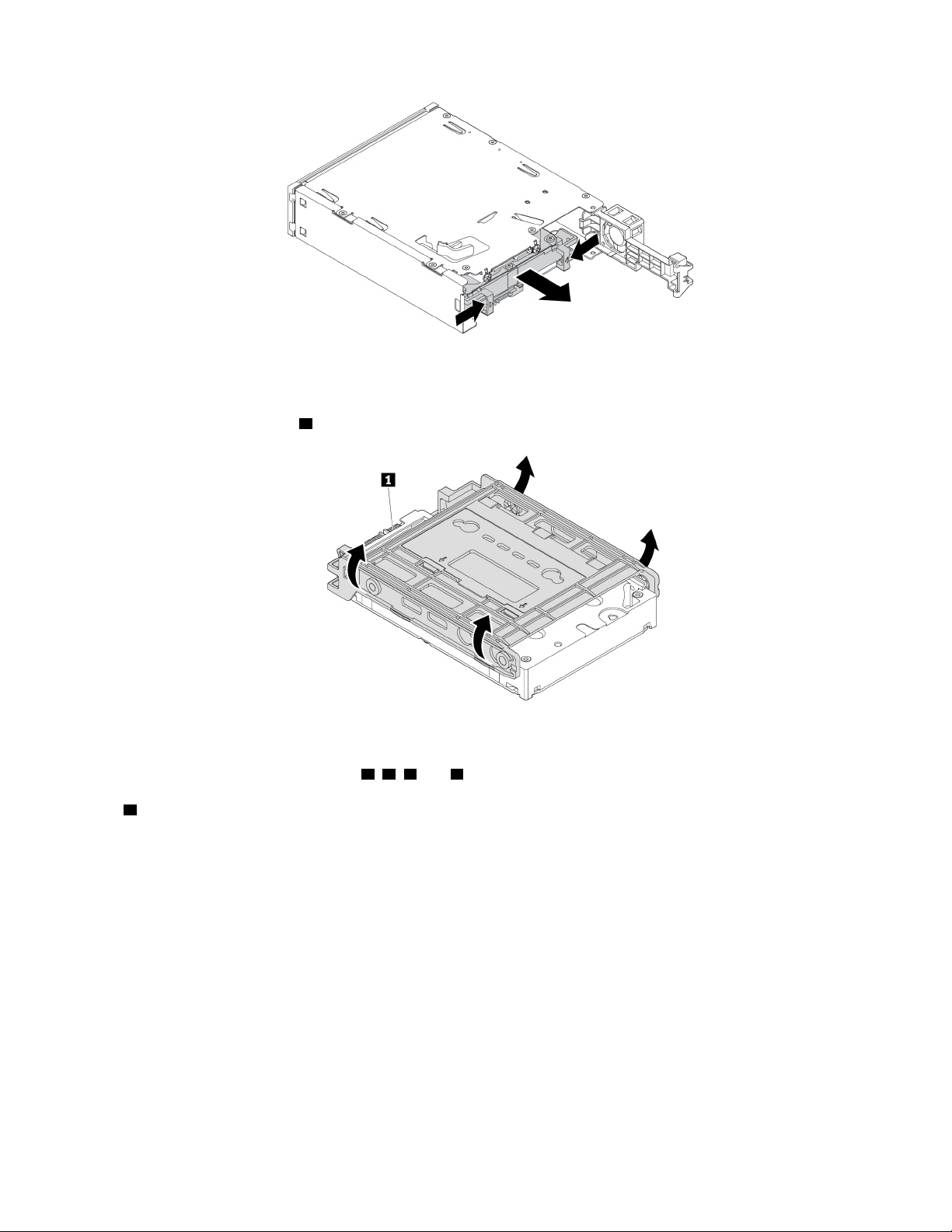 b. Böj in båda sidorna på hållaren för att ta bort den interna 2,5-tumslagringsenheten från hållaren.