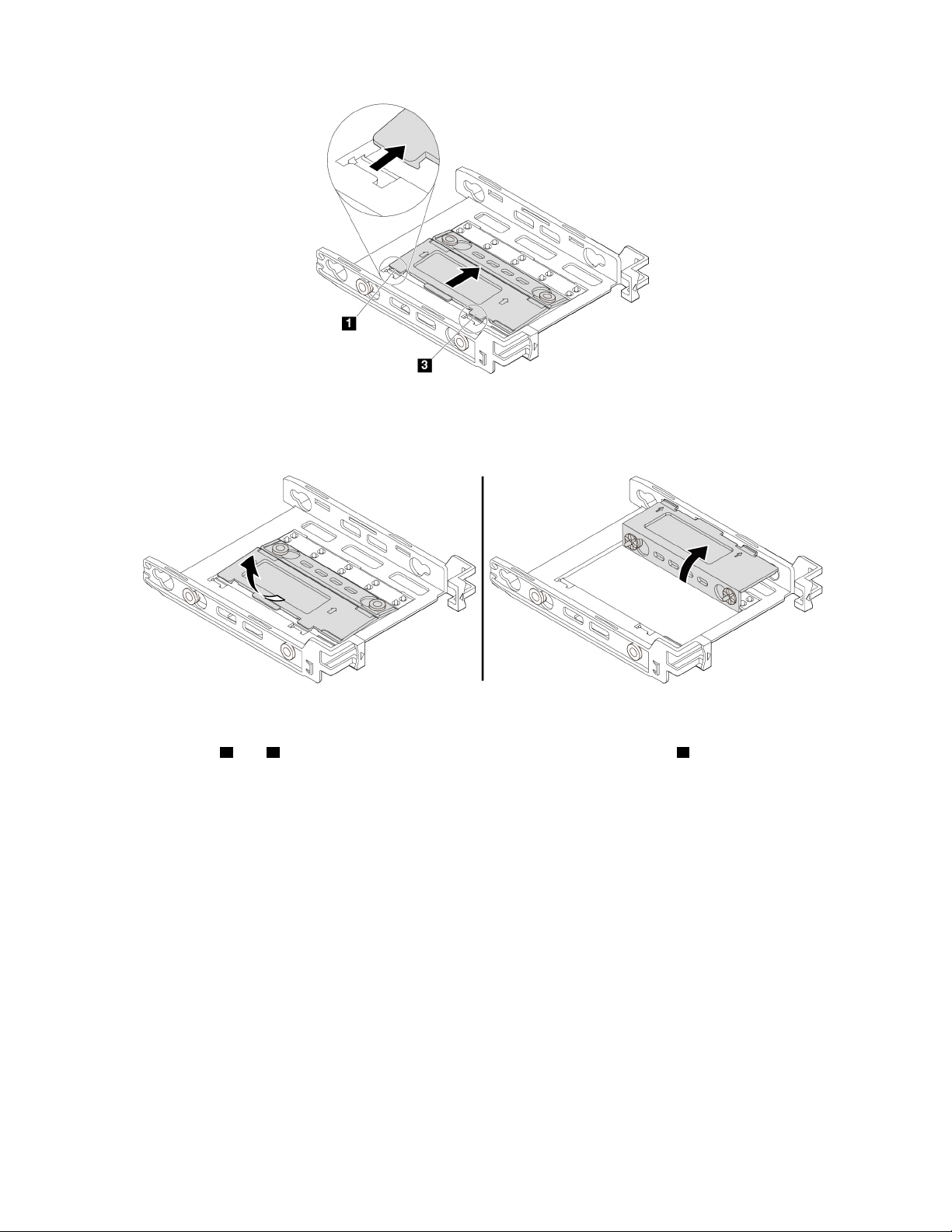 6. Installera en intern 2,5-tumslagringsenhet i hållaren. Se ”Intern 2,5-tumslagringsenhet” på sidan 80.