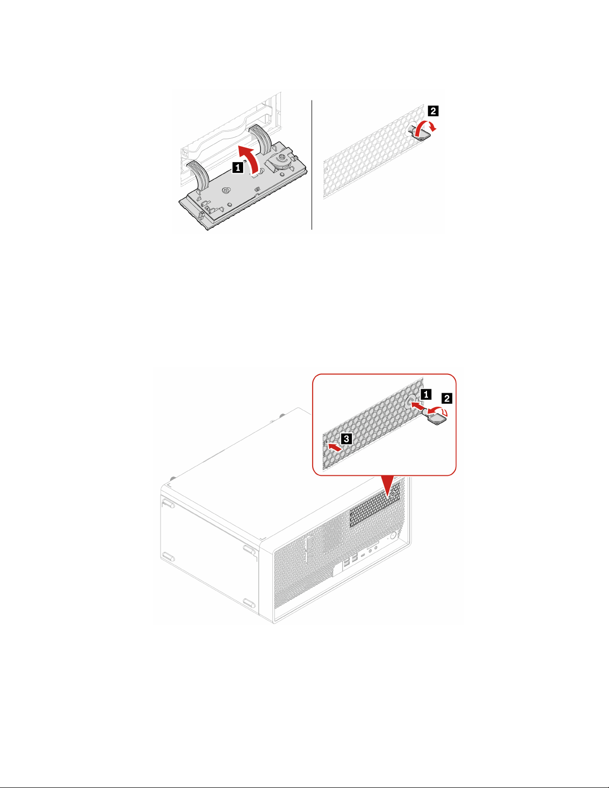 gumibakokat a lyukakon. Húzza meg a gumibakok végeit, hogy az elülső ventilátor rögzítésre
