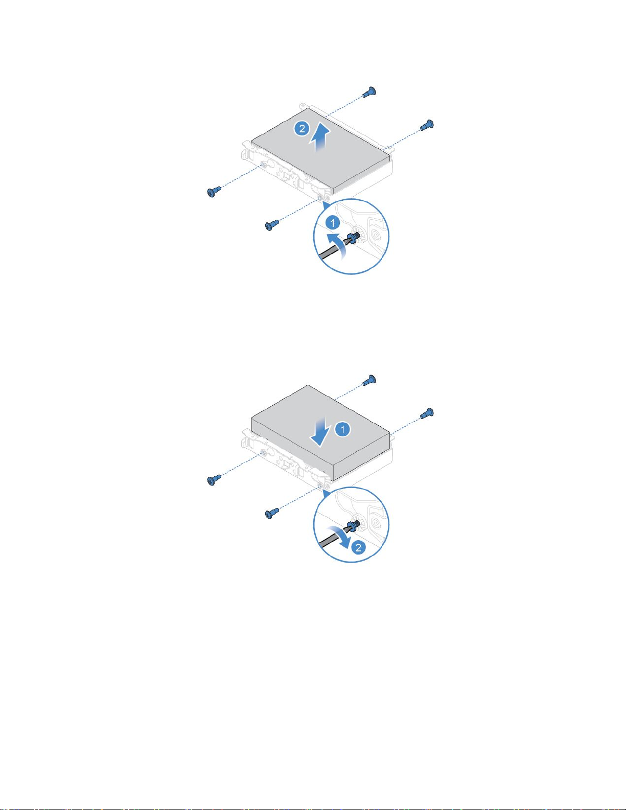 5.ストレージ・ドライブを取り外します。23ページの「ストレージ・ドライブの交換」を参照