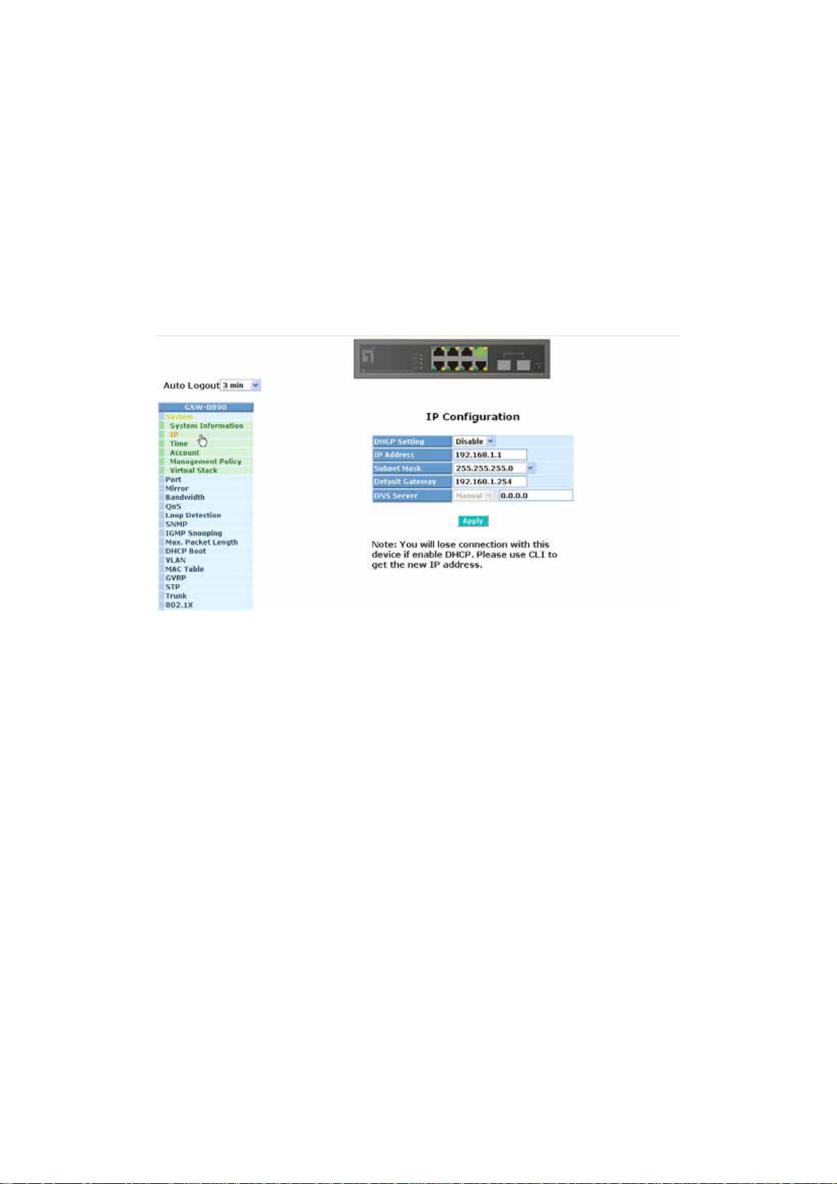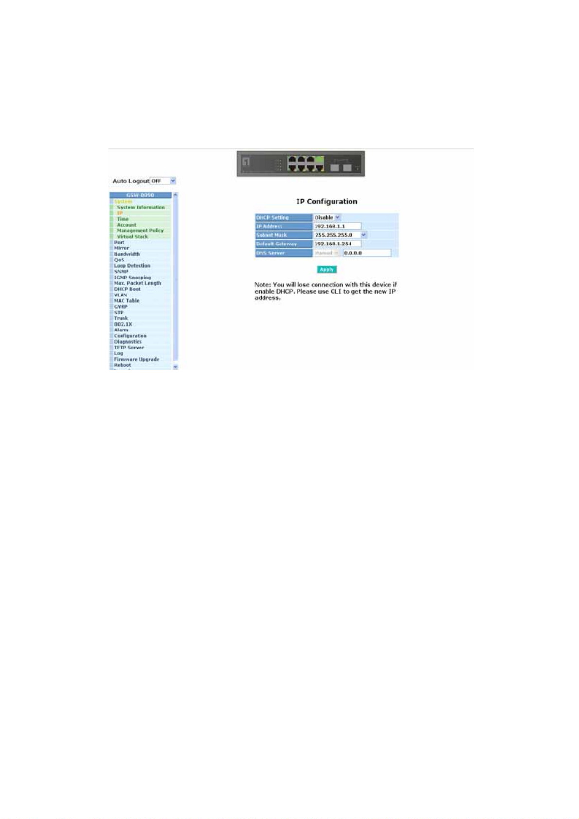 “Enable” or “Disable”. Then, click the <Apply> button, the system will