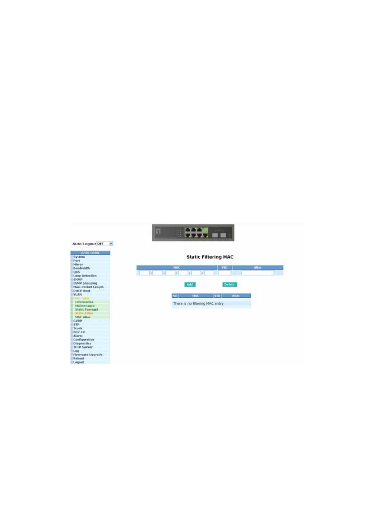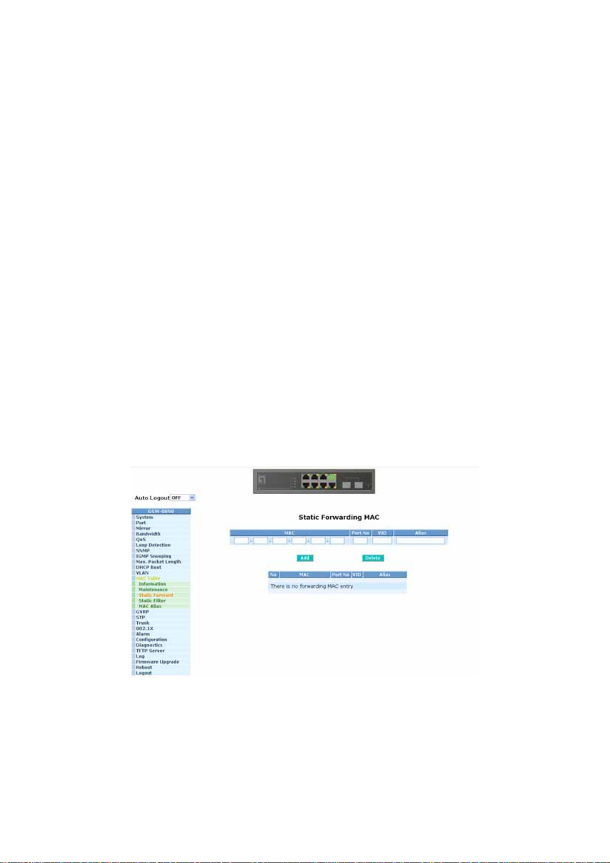 maintain the table by filling in MAC Address, VID (VLAN ID) and Alias fields