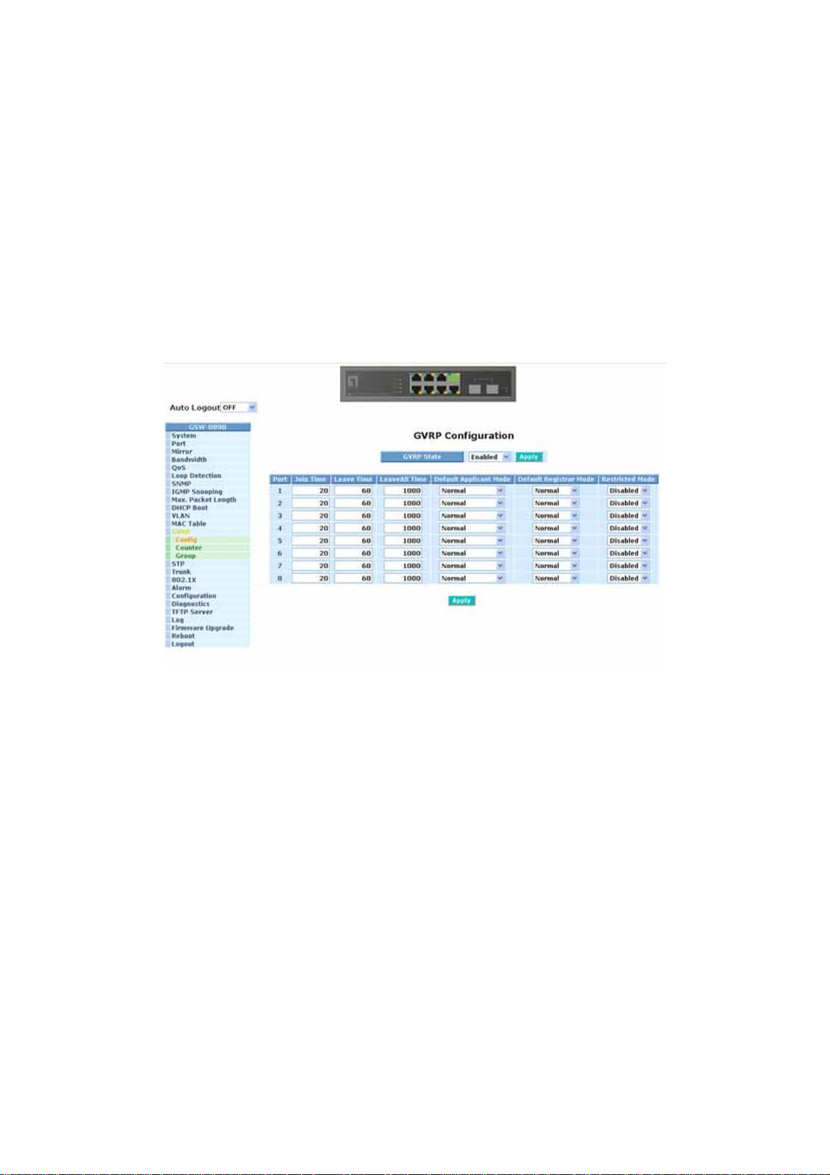 In the function of GVRP Config, it is used to configure each port’s GVRP