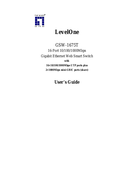 Congratulations on your purchase of LevelOne GSW-1675T 16- Port
