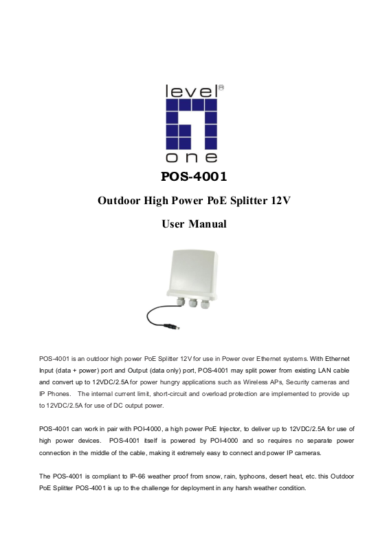 PoE Splitter POS-4001 is up to the challenge for deployment in any harsh weather condition.