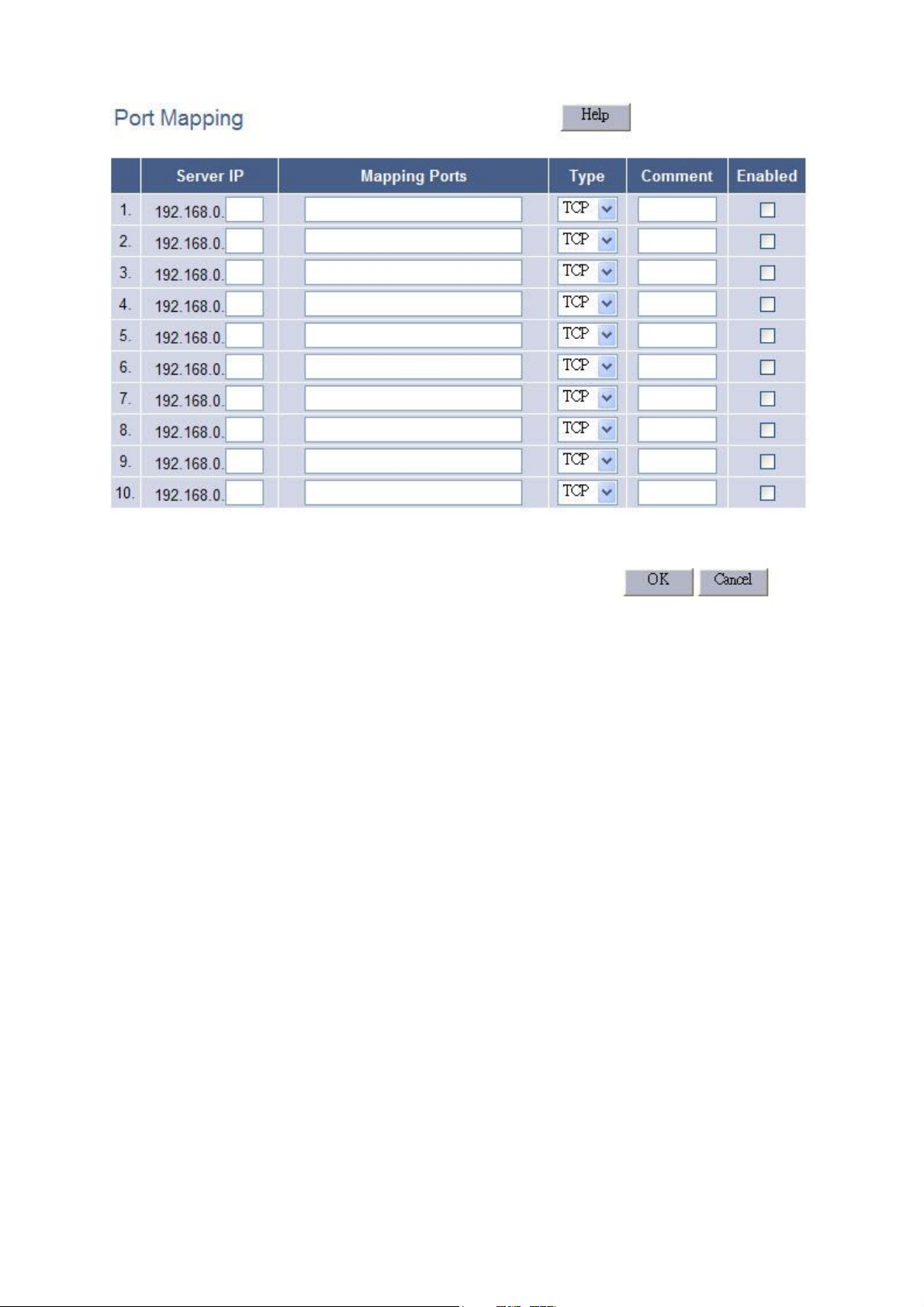 Set the ports to mapping from WAN to LAN. You can enter multiple ports,