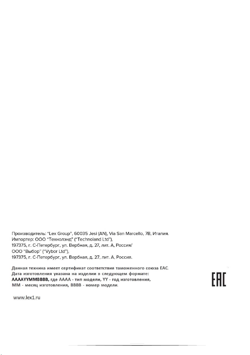Изготовитель снимает с себя всякую ответственность за ущерб, нанесенный в результате неправильной или не соответствующей общепринятым правилам установки. Рекомендуется, чтобы все операции по установке и наладке выполнялись квалифицированным персоналом. После извлечения вытяжки из упаковки, проверьте ее целостность. Если изделие повреждено, не пользуйтесь им, обратитесь в сервисный центр компании LEX. Адреса авторизированных сервисных центров Вы можете найти на сайте www.lex1.ru в разделе «Для клиентов/Сервисные центры».
