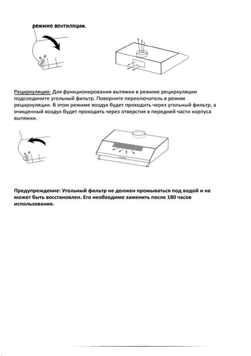 вентилятора. При значительном скоплении испарений в кухне потребуется более длительное использование вытяжки.