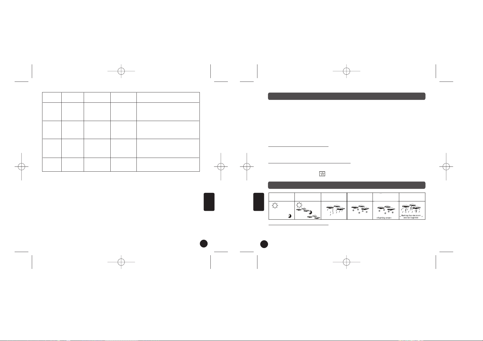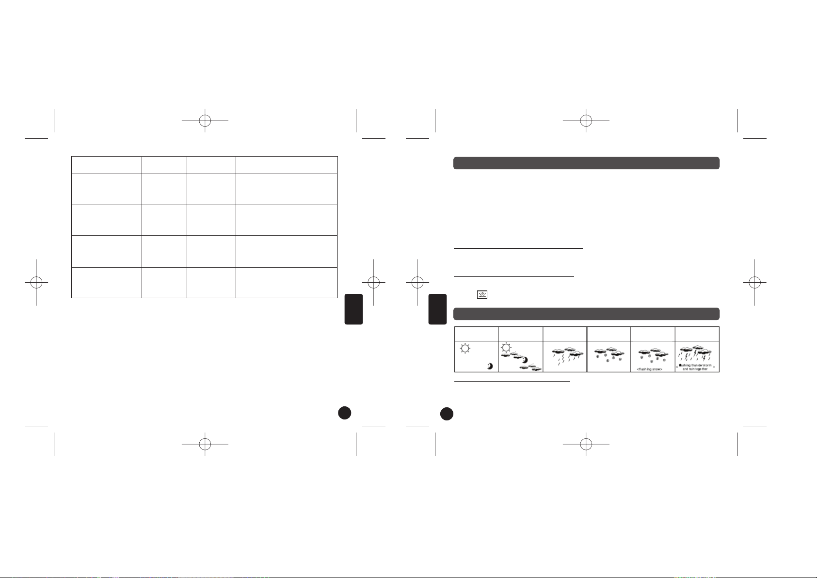 3. MINUTE/- : pour changer l’unité de niveau de précipitations & vitesse du vent, pour régler les valeurs