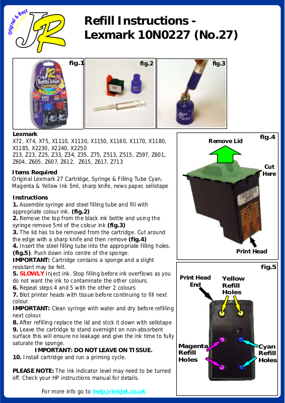 Refill Instructions ÂLexmark 10N0227 (No.27)