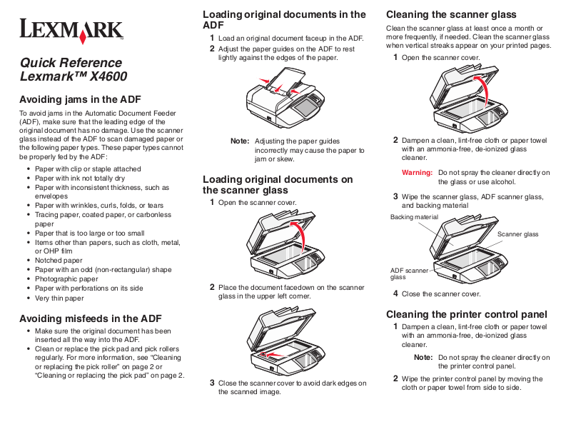 more frequently, if needed. Clean the scanner glass