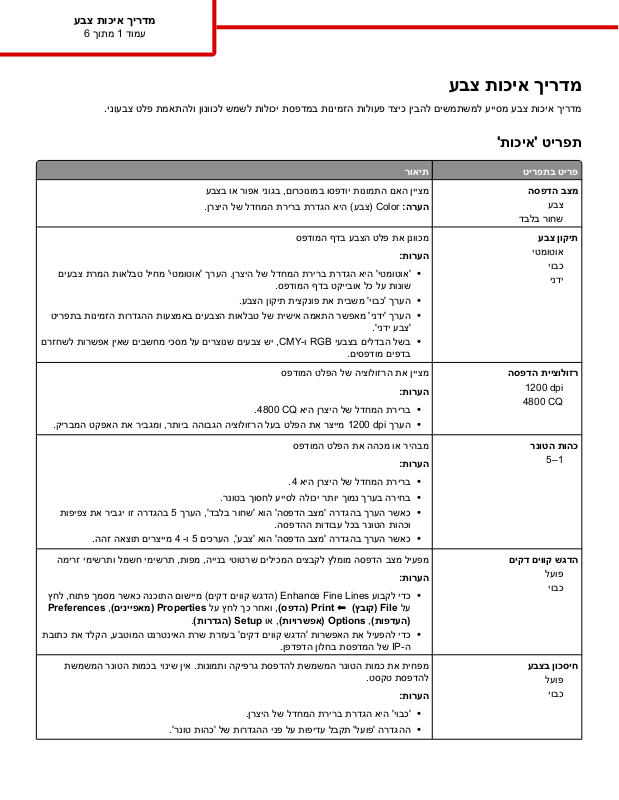 Lexmark C734DW, C736N, C734DN, C734DTN, C736DN Color Quality Guide [he]