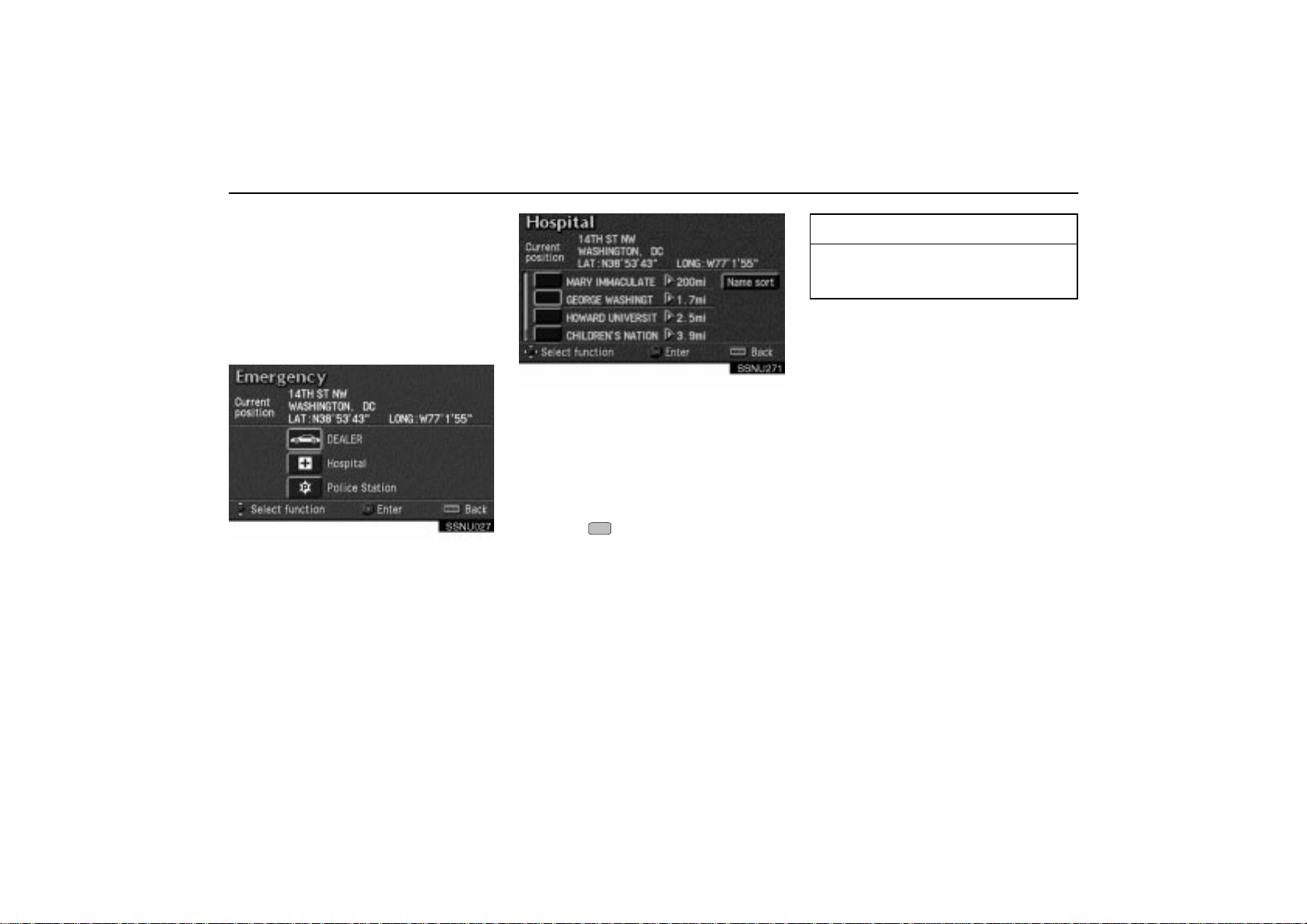 The accuracy of the vehicle’s position depends on the satellite condition, road configuration, vehicle condition or other circumstances. For more information on the limitations of the system, refer to pages 49 through 50.