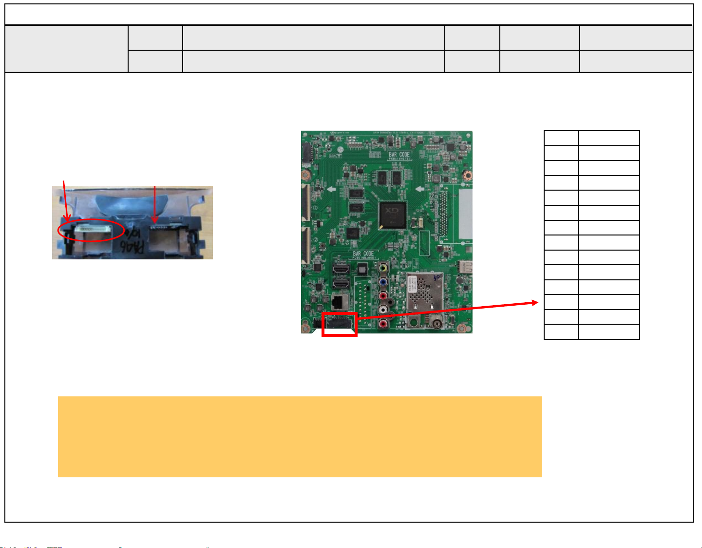 1.Check IR cable condition between IR & Main board.( Check picture number① and ② )
