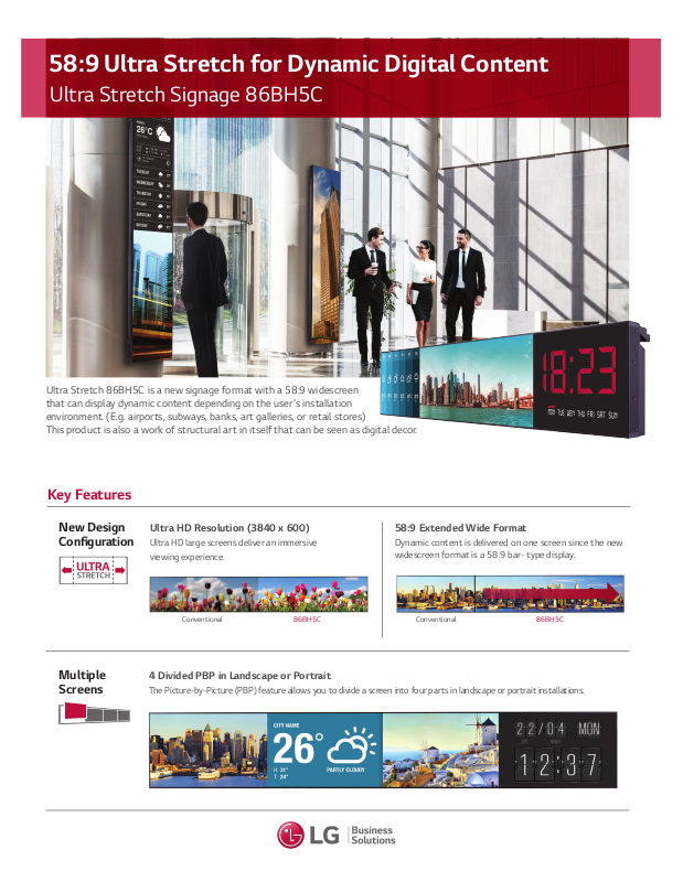 Ultra Stretch 86BH5C is a new signage format with a 58:9 widescreen