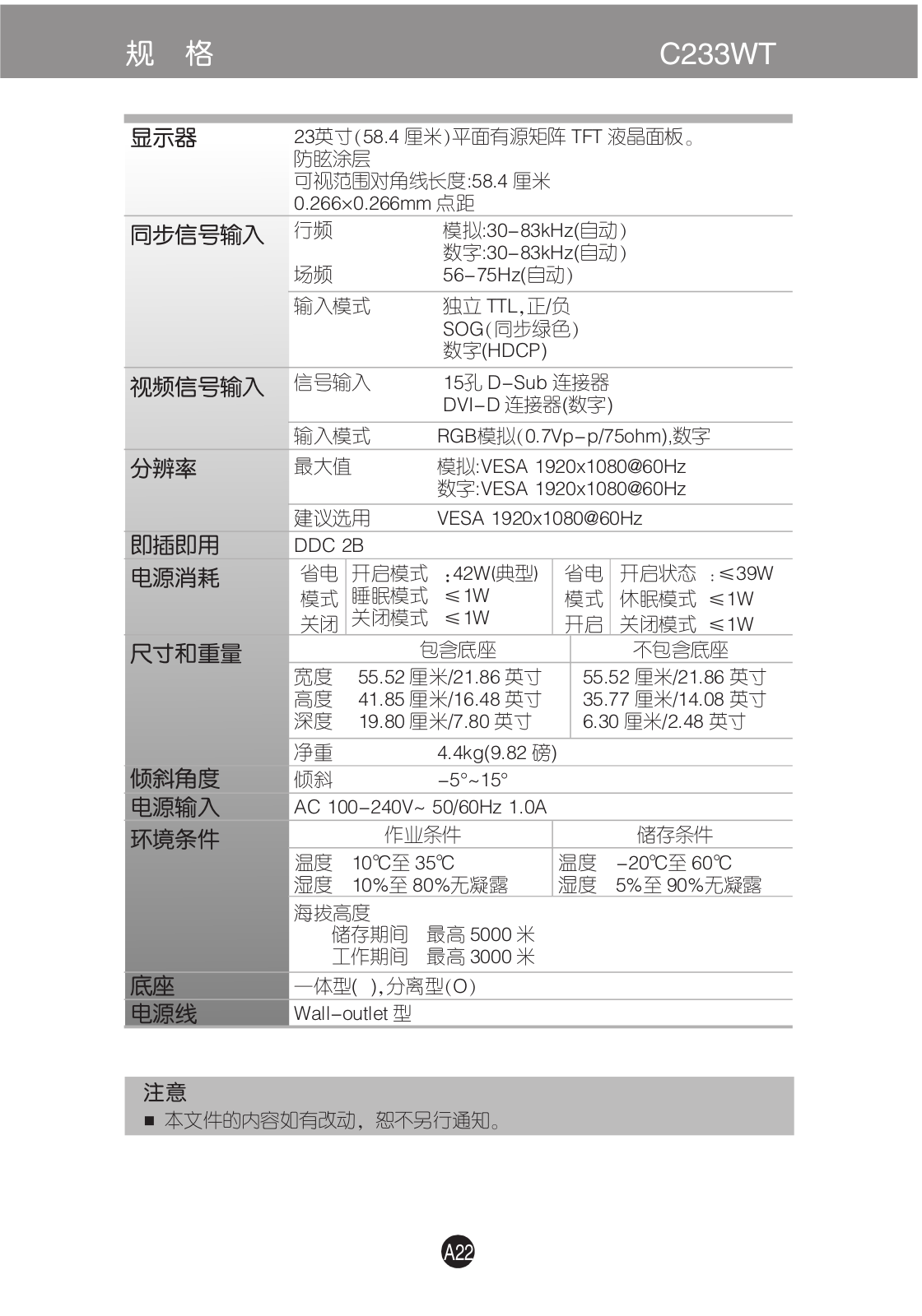 LG C223WT, C233WT User Manual