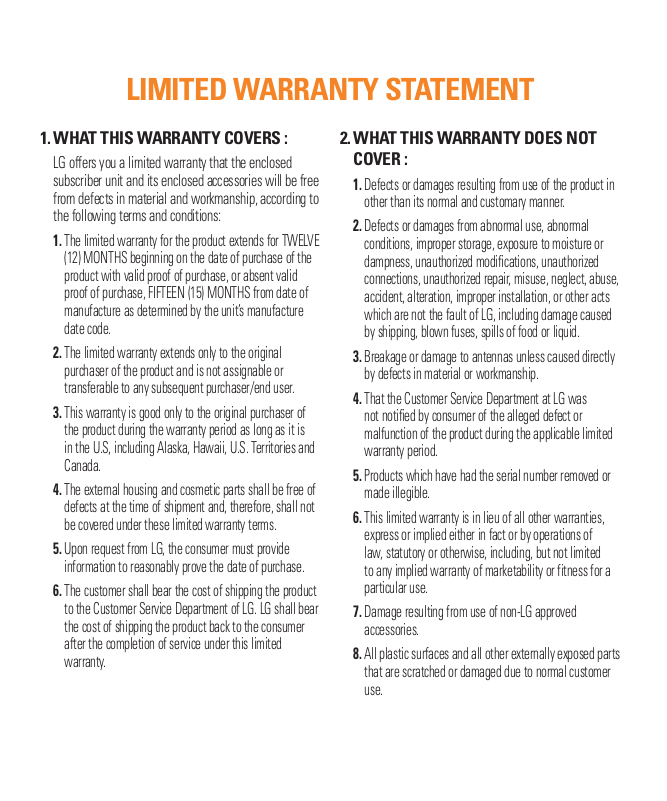 THE EXPRESS WARRANTY HEREIN. LG INFOCOMM